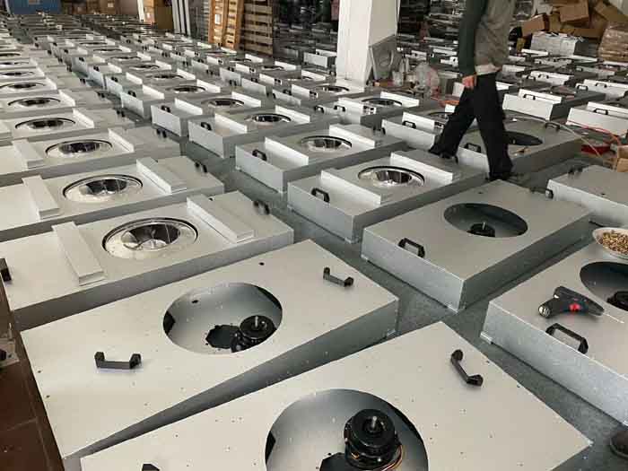 當前位置:首頁 >> 潔凈室知識 >> FFU風機過濾單元的三大組成部分(風機,初效,高效過濾器)FFU風機過濾單元的三大組成部分(風機,初效,高效過濾器)FFU風機過濾單元英文全稱為(Fan Filter Unit),中文專業用語為風機過濾機組。 FFU風機濾單元可模塊化連接使用,廣泛應用于電子、制藥、食品、生物工程、醫療、實驗室等應用場合。FFU設有初效過濾器、高效兩級過濾網。風機從FFU頂部將空氣吸入并經初效過濾器、FFU高效過濾器過濾,過濾后的潔 …