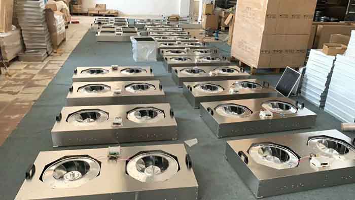 什么是無塵送風機組FFU?無塵送風機機組FFU系列產品主要用途是凈化送入潔凈區的空氣,以達到潔凈環境的要求。無塵送風機組FFU它安裝于潔凈區或工作區天花龍骨(T-Grid)上或設備機臺上,用途較廣,其實有些地區也把無塵送風機組叫做FFU。無塵送風機組主要應用于半導體、液晶顯示、光電電子、精密儀器、化學、生物醫藥、醫院、食品、研究院所、高校、航天、汽車、涂裝、印刷等領域。
