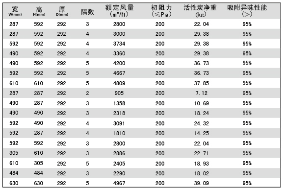 用戶選購指南-板式初效活性炭過濾器技術參數